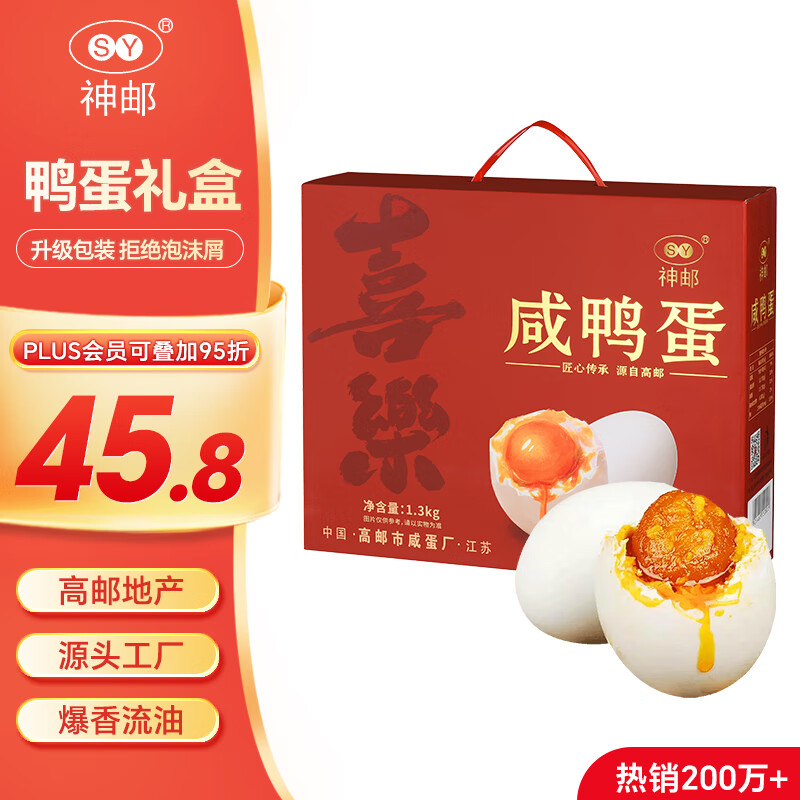 神邮 高邮咸鸭蛋 熟20枚*65g礼盒 即食流油咸蛋黄