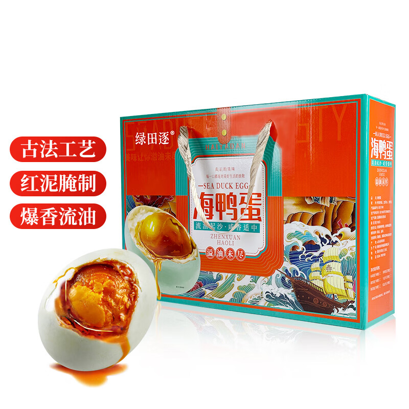 绿田逐咸鸭蛋 熟20枚*60g礼盒装1200g 即食流油咸蛋黄 企业团购