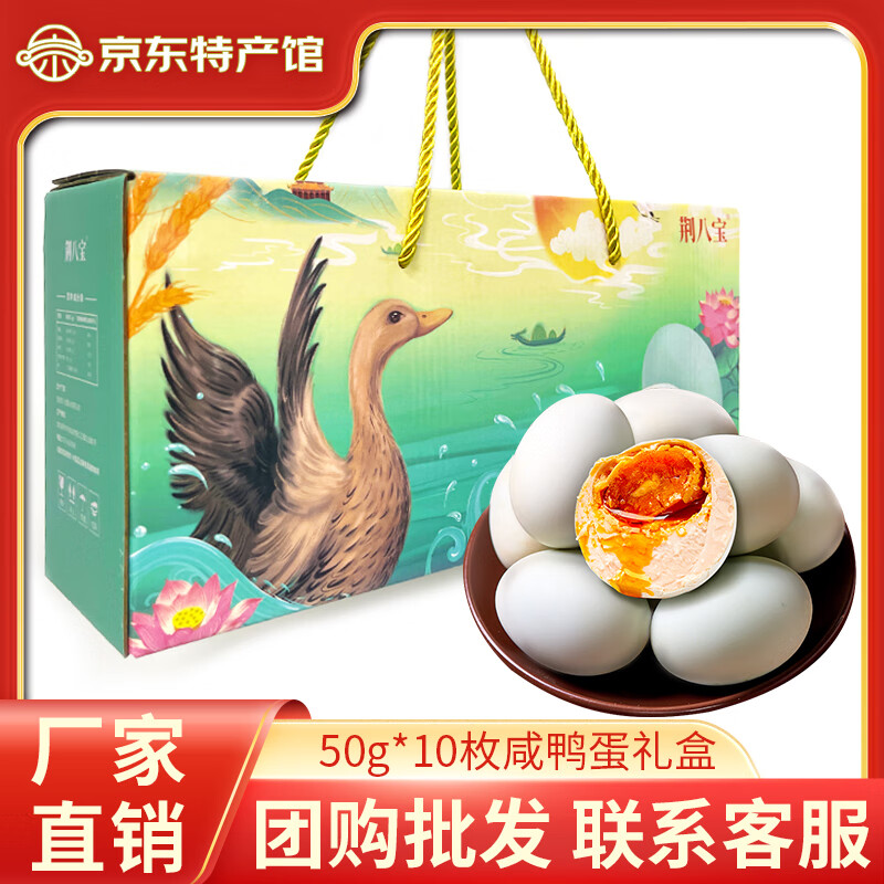 荆八宝 咸鸭蛋熟 大蛋黄红心起沙流油 农家散养鸭蛋盐蛋 生鲜 真空装 50g*10枚咸鸭蛋礼盒【臻品鎏沙】