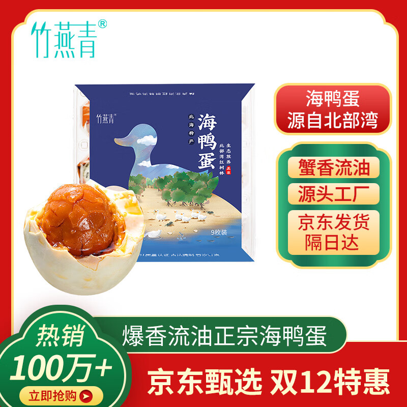 竹燕青北海烤海鸭蛋70g*9枚红泥腌制北部湾散养大蛋流油团购熟咸鸭蛋
