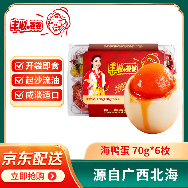 丰收婆婆烤海鸭蛋 70g*6枚家庭装 北海红树林海咸鸭蛋红泥腌制