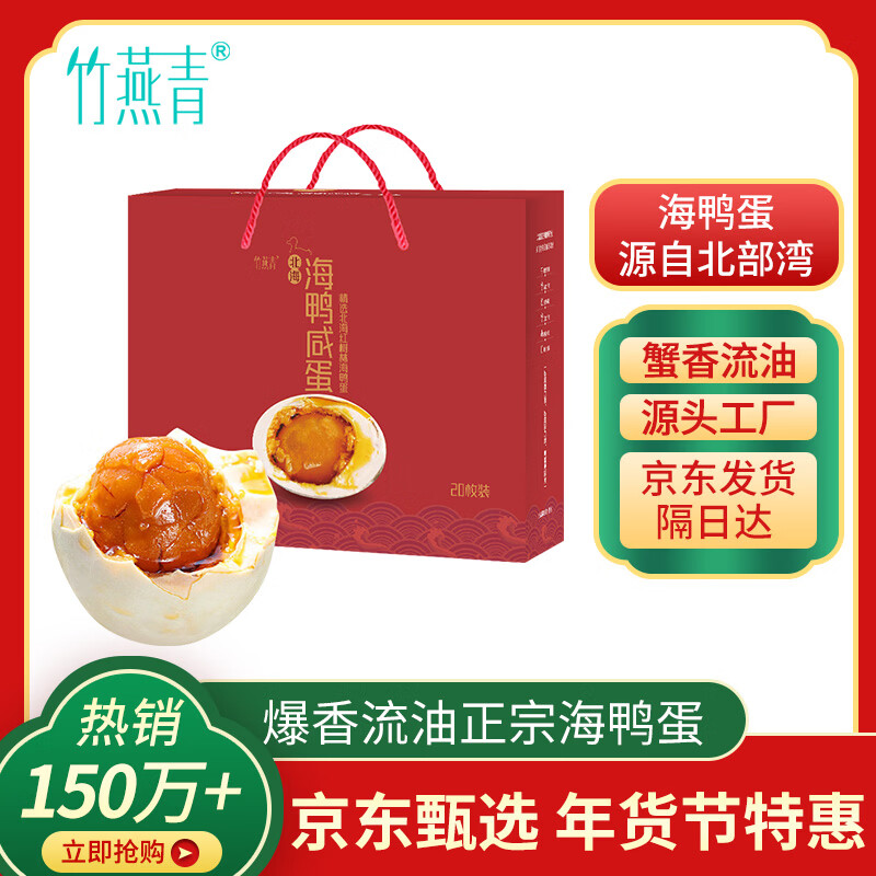 竹燕青烤海鸭蛋60g*20枚礼盒流油北海红树林团购年货节福利即食咸鸭蛋熟