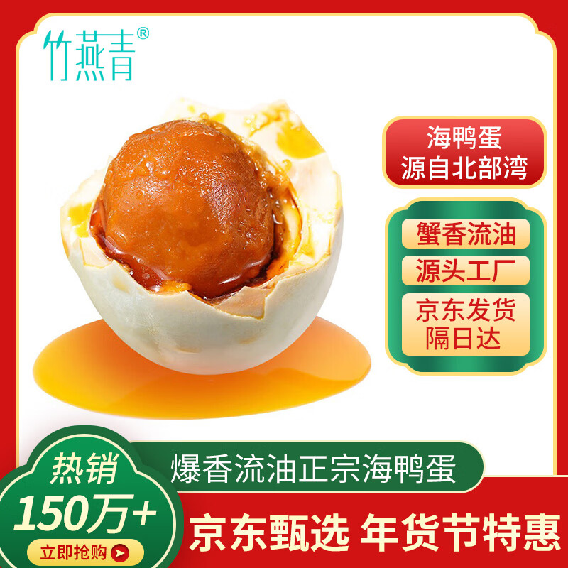 竹燕青熟咸鸭蛋20枚蟹香年货节礼品即食北海红树林初生烤海鸭蛋55g流油