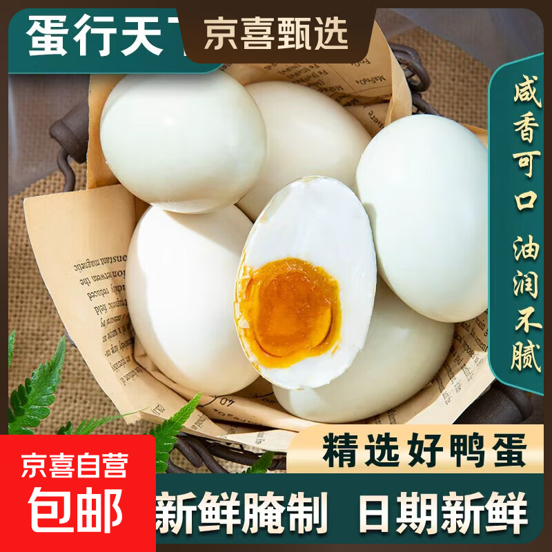 神邮 高邮咸鸭蛋 熟20枚*60g 家庭装 即食流油咸蛋黄