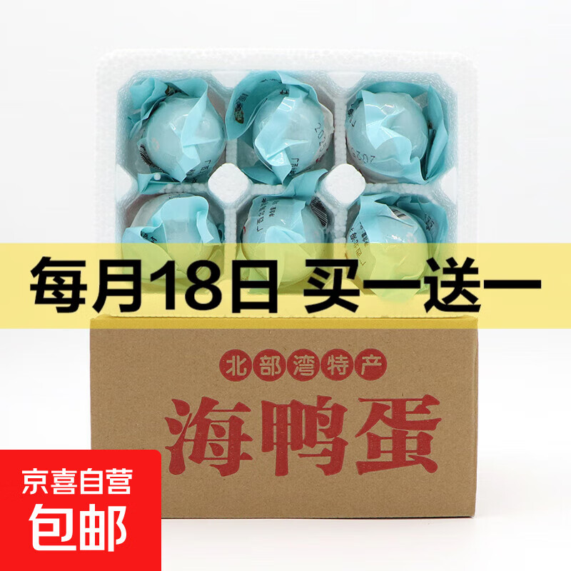北海老渔村 广西北海红树林海鸭蛋 蛋黄咸香流油咸鸭蛋 50-60克 精品海鸭蛋 50-60g*6枚(300g以上)
