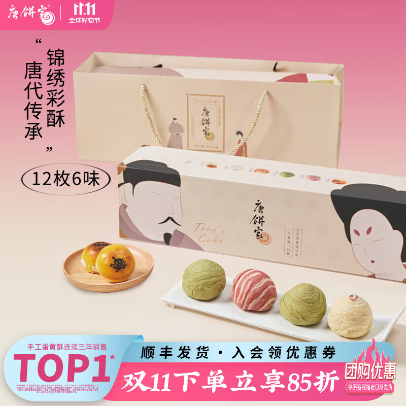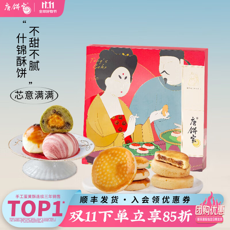 唐饼家国风80g*12枚手工蛋黄酥上海糕点零食唐彩酥顺丰 545g 蛋黄酥4凤梨酥3绿豆糕4