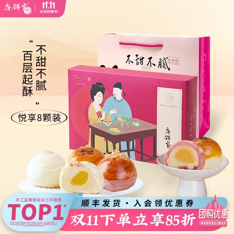 唐饼家糕点礼盒蛋黄酥上海特产点心零食下午茶小吃团购送礼伴手礼 悦享唐彩酥礼盒8枚共480g