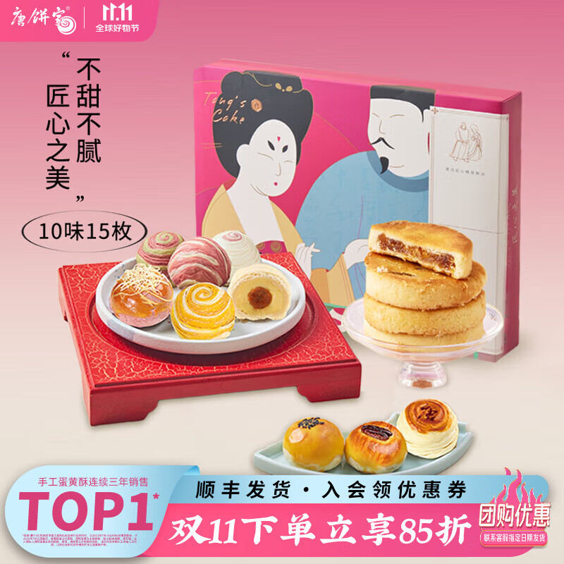 唐饼家上海特产手工糕点礼盒中秋节月饼送礼蛋黄酥零食点心 【送礼推荐】唐彩酥组合10味15枚