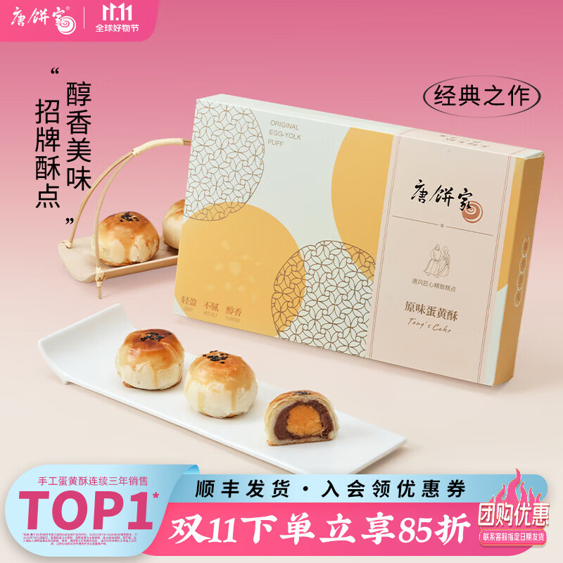 唐饼家上海特产手工糕点礼盒中秋节月饼送礼蛋黄酥零食点心 【畅销经典】原味蛋黄酥60g*6枚