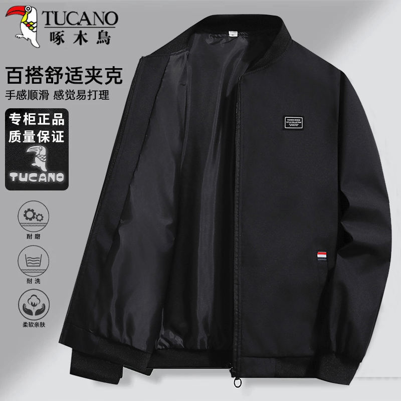 啄木鸟(TUCANO)外套男春秋季宽松夹克男立领休闲潮复古工装上衣男装 黑色 2XL