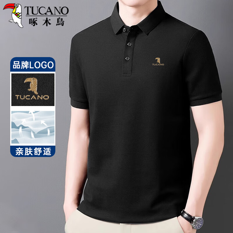 啄木鸟(TUCANO)短袖T恤男士夏季商务休闲翻领polo衫经典百搭上衣男装 黑色3XL