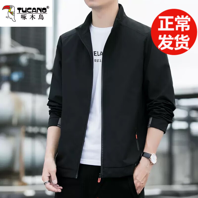 啄木鸟夹克男士外套春秋季2026款潮流时尚休闲百搭男装潮牌外穿上衣服 10342/J6618黑色 XL