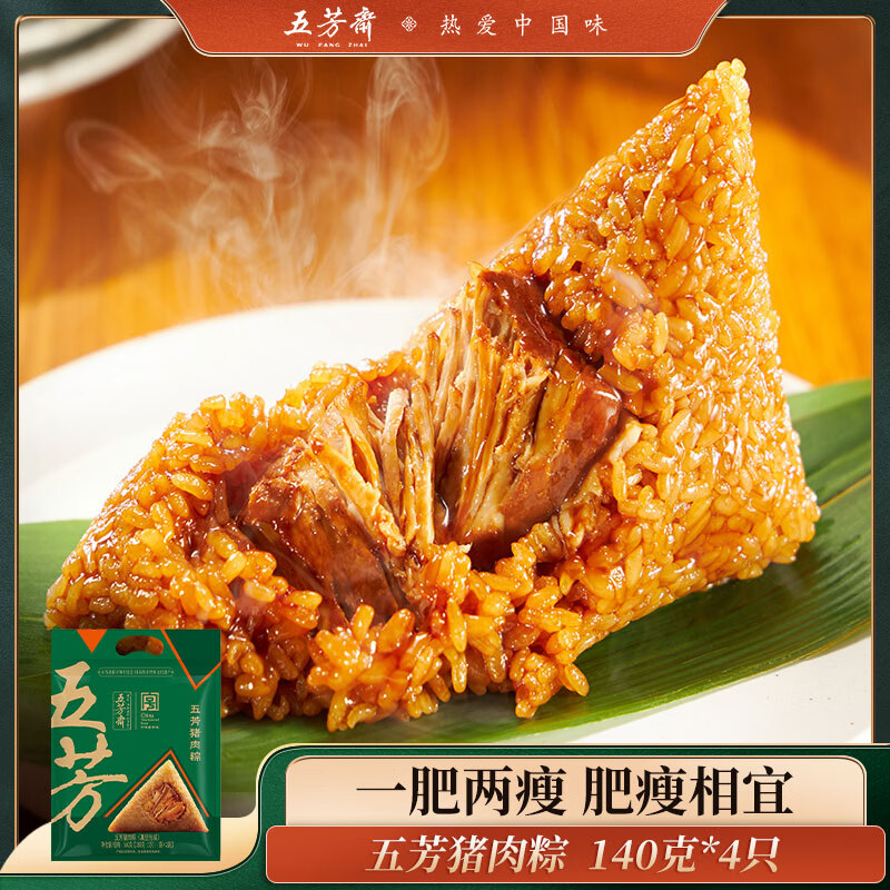 五芳斋粽子 五芳大肉粽280克 140g*2只袋装 中华老字号 嘉兴粽子特产