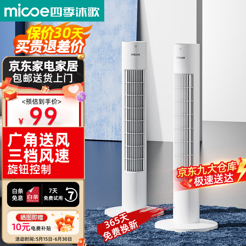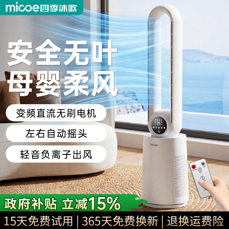 四季沐歌(MICOE)塔扇电风扇无叶风扇智能落地扇轻音低噪柔风立式家用办公室卧室空气循环大风力电扇ATF-020