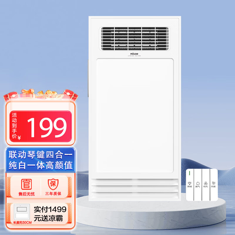 四季沐歌(MICOE)风暖双核浴霸强暖卫生间排气扇照明一体集成浴室暖风机语音智控 【恒温温控】无线轻触|2800W制热