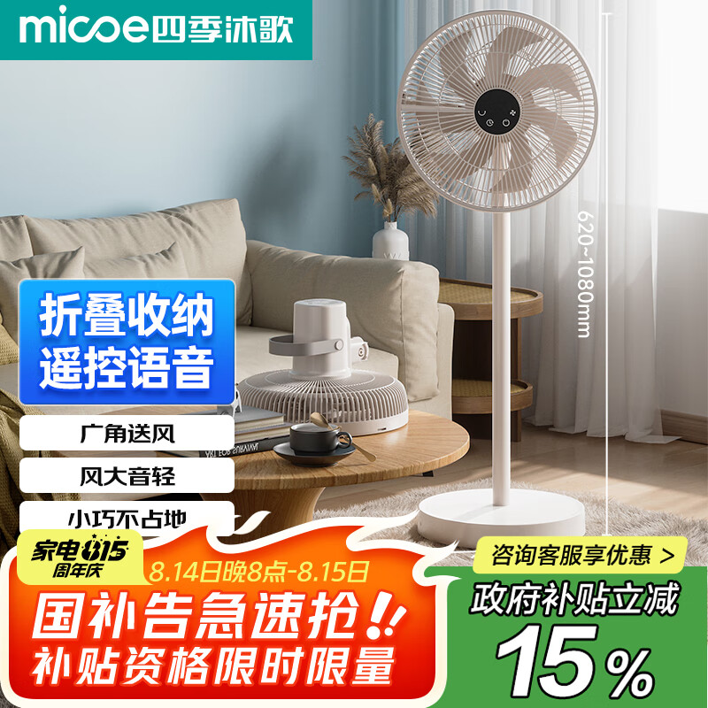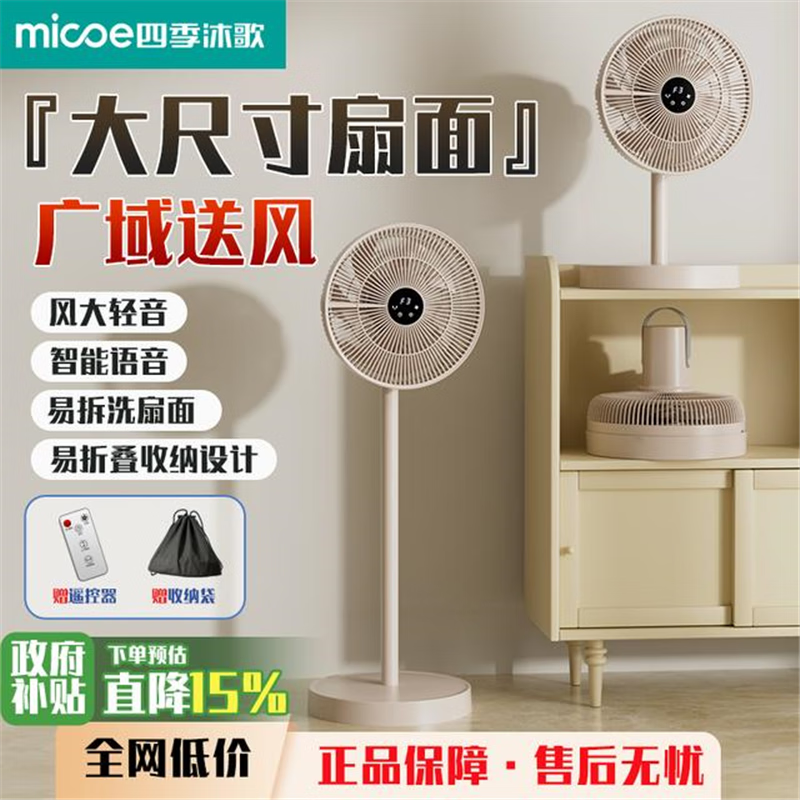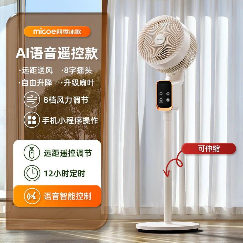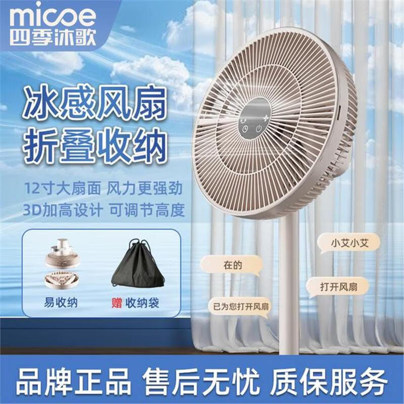 四季沐歌MICOE/2025年新款冰感智能语音收纳循环扇风力大静音电扇 AI智能语音款