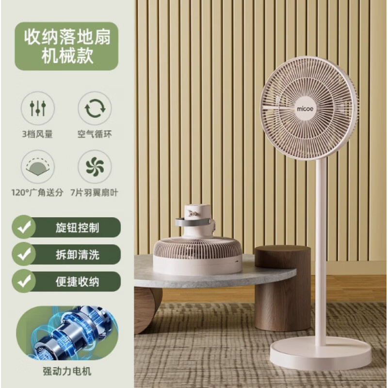 四季沐歌(MICOE)2025新款四季沐歌落地扇家用AI智能语音触屏风扇折叠收纳落地风扇 奶杏色机械摇头款-折叠收纳