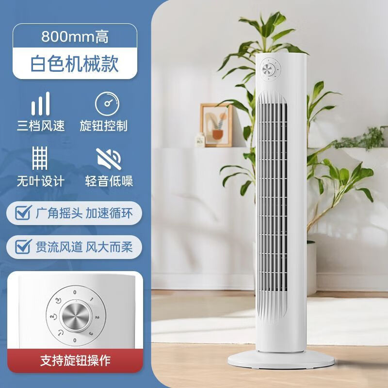四季沐歌(MICOE)MICOE电风扇家用塔扇落地扇摇头无叶塔式卧室遥控宿舍静音电扇 白色基础款[800mm]儿童房推荐