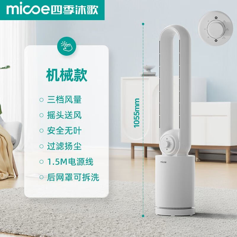 四季沐歌(MICOE)MICOE无叶风扇家用落地扇轻音立式塔扇空调扇节能无扇叶电风扇 直筒机械基础款[1050mm/三档风]
