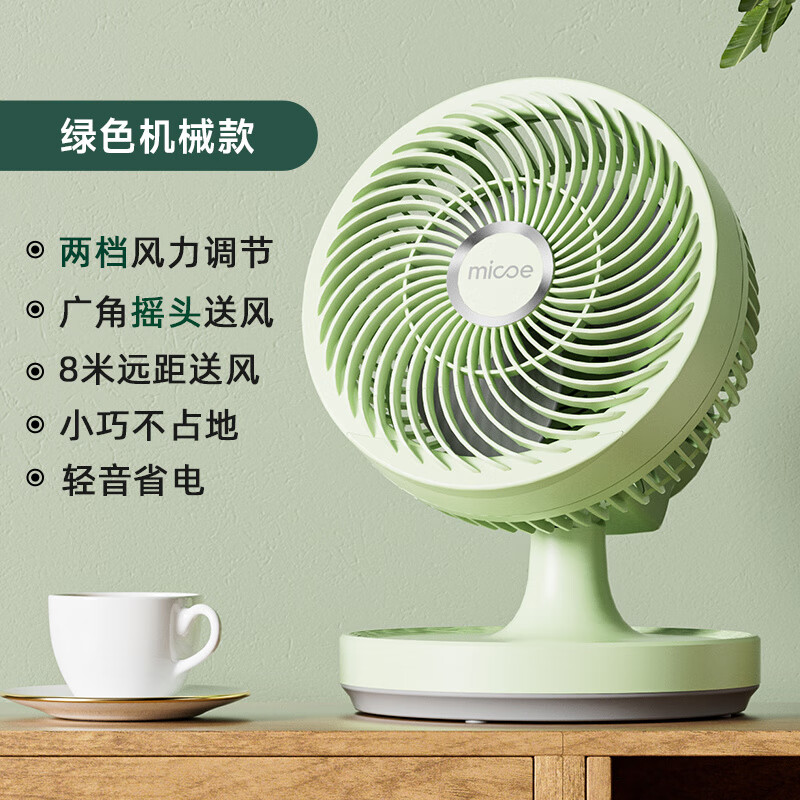 四季沐歌办公室桌面空气循环扇小型静音风扇家用台式电风扇宿舍学生风扇 春雾绿机械摇头款