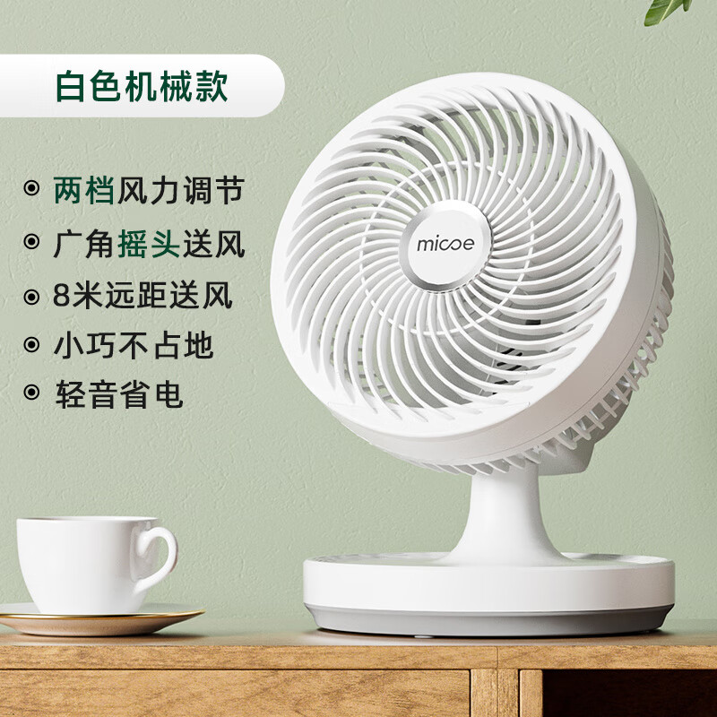 四季沐歌空气循环扇风扇家用电风扇小型台扇宿舍办公室卧室台式涡轮大风扇 奶糖白基础款