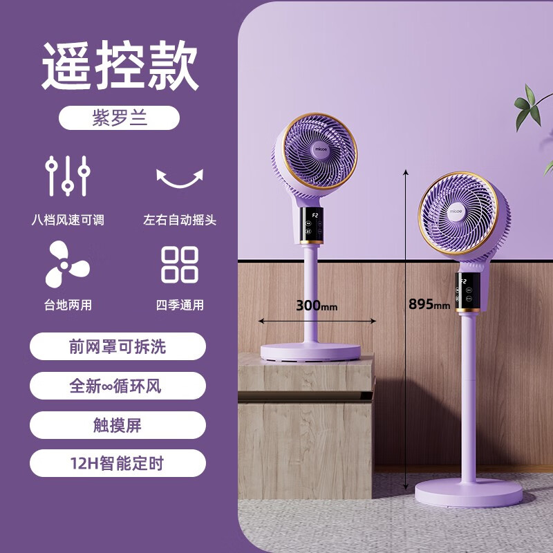 四季沐歌空气循环扇电风扇家用落地扇静音遥控涡轮台立式电扇 10英寸遥控紫[左右摇头]