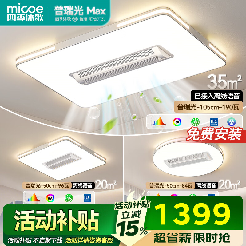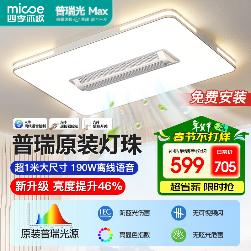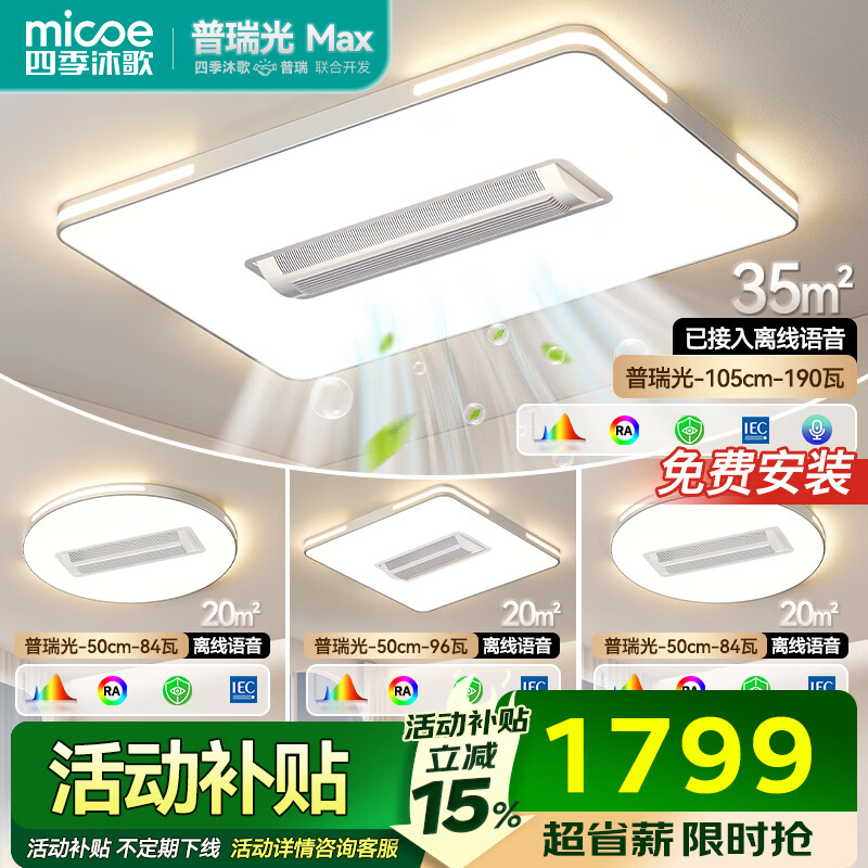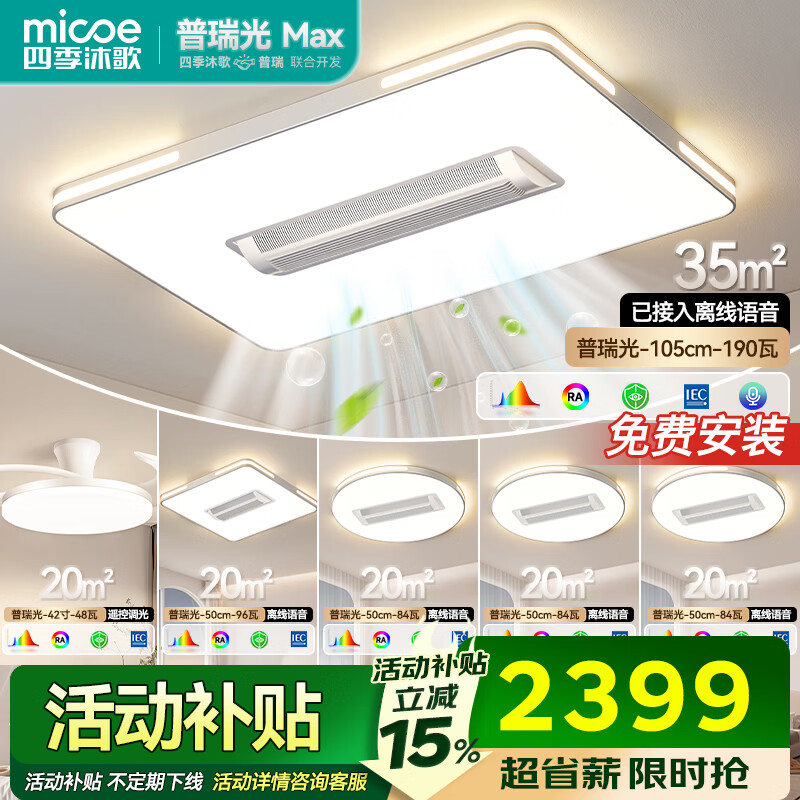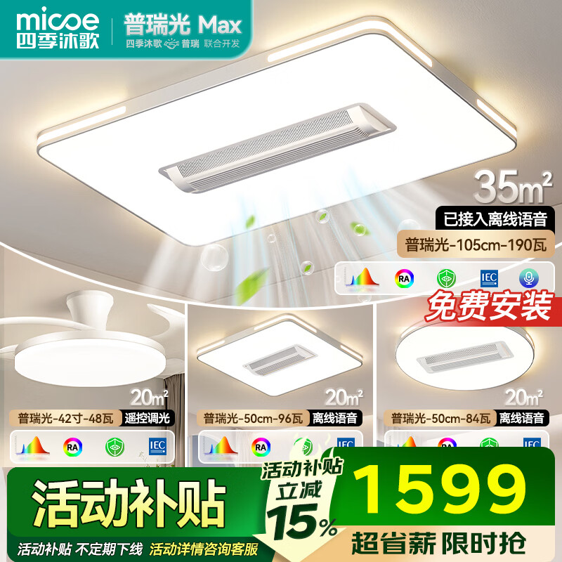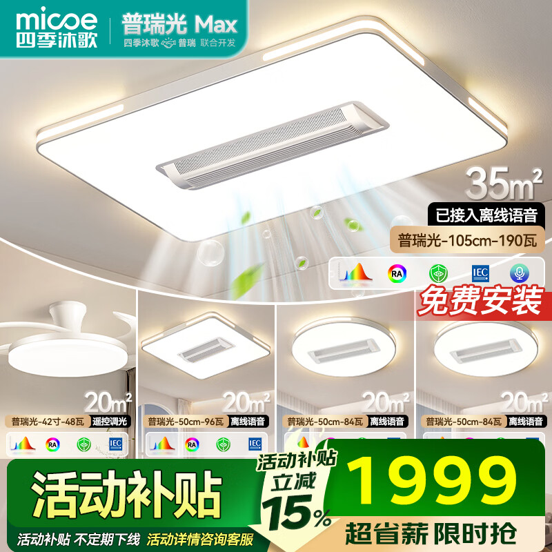 四季沐歌(MICOE)普瑞护眼led吸顶灯无叶风扇灯智能客厅卧室简约中山灯具包安装