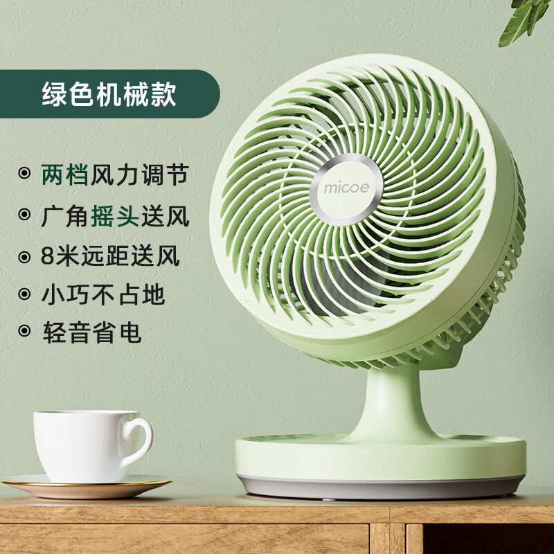 四季沐歌(MICOE)家用空气循环扇小型桌面风扇静音大风力台式电风扇床头摇头风扇 春雾绿机械摇头款