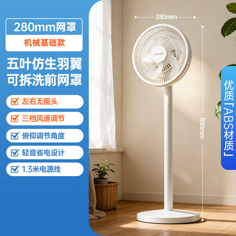 四季沐歌(MICOE)2026新款电风扇家用台式立式电扇静音宿舍卧室风扇落地桌面小台扇 五叶机械标准款.