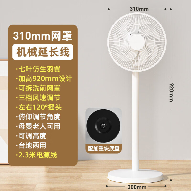 四季沐歌电风扇落地扇家用2026新款风扇立式卧室宿舍小型摇头遥控电扇 七叶机械延长线款.