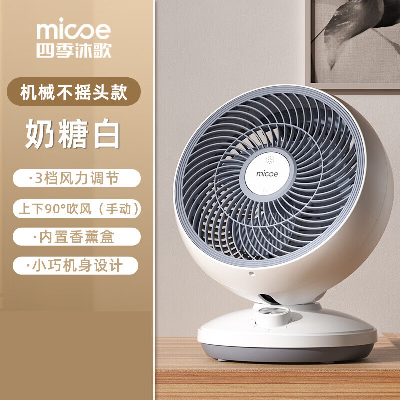 四季沐歌(MICOE)空气循环扇家用电风扇台式静音电风扇学生宿舍小型台扇风扇 奶糖白基础款