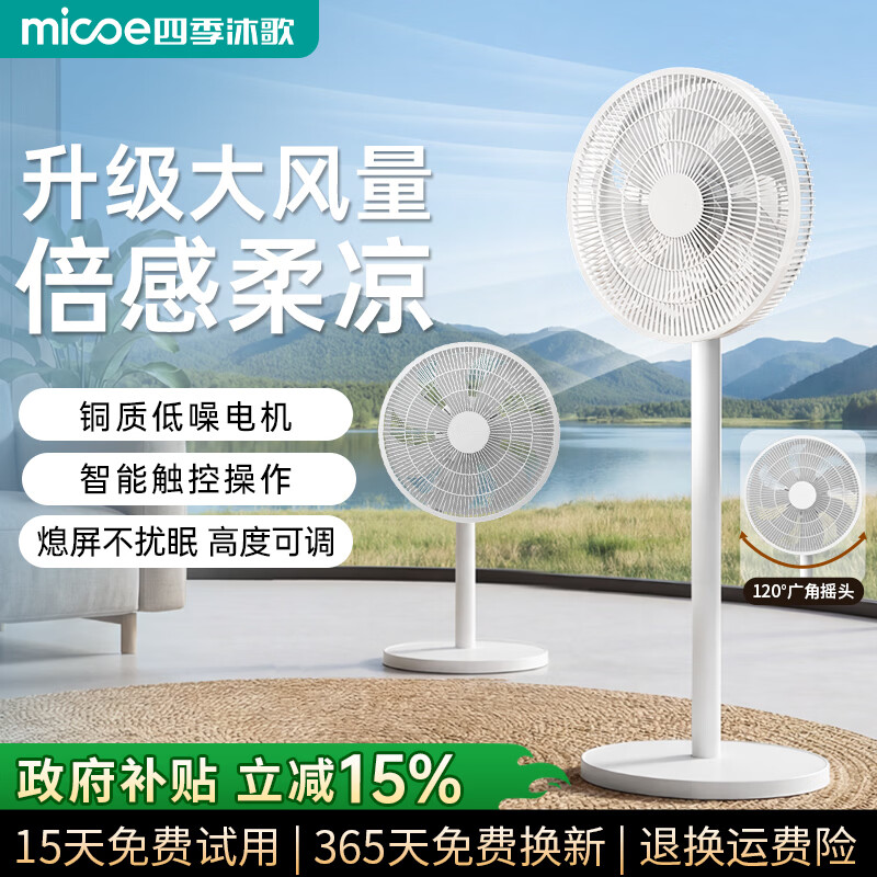 四季沐歌(MICOE)电风扇落地扇家用2026新款风扇立式卧室宿舍小型摇头静音遥控电扇 五叶机械不摇头款.