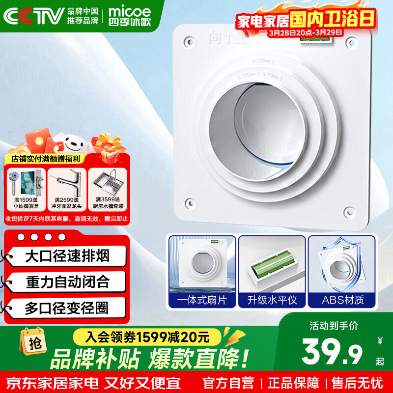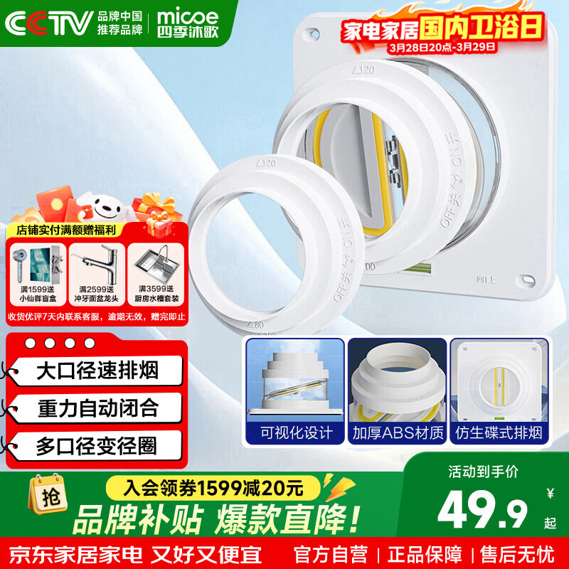 四季沐歌卫生间止逆阀排风扇浴霸多重密封止回阀升级版可视透窗防臭防味阀