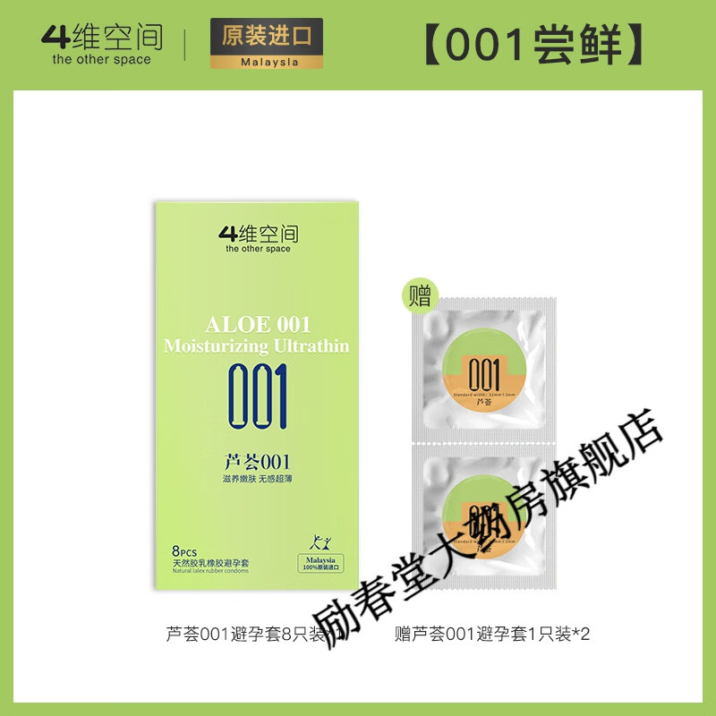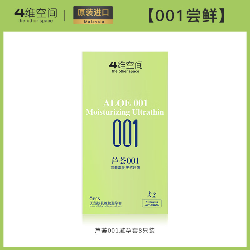 4维空间【芦荟避孕套】001超润滑超薄型裸入正i品四维空间0.01安全套 【001尝鲜】芦荟001避孕套8+赠芦荟001避孕