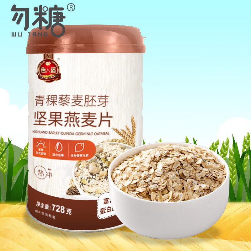 勿糖 唐人福青稞藜麦胚芽坚果麦片728g/罐无糖精糖友孕妇代早餐燕麦片