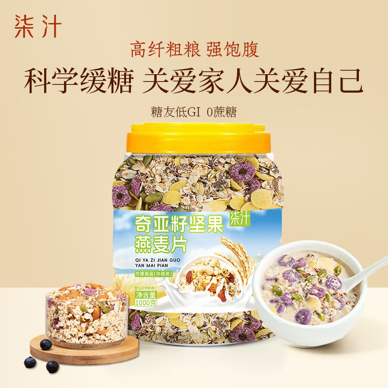 柒汁奇亚籽坚果燕麦片1kg无杂粮食品主食晚餐早餐午餐代餐麦片