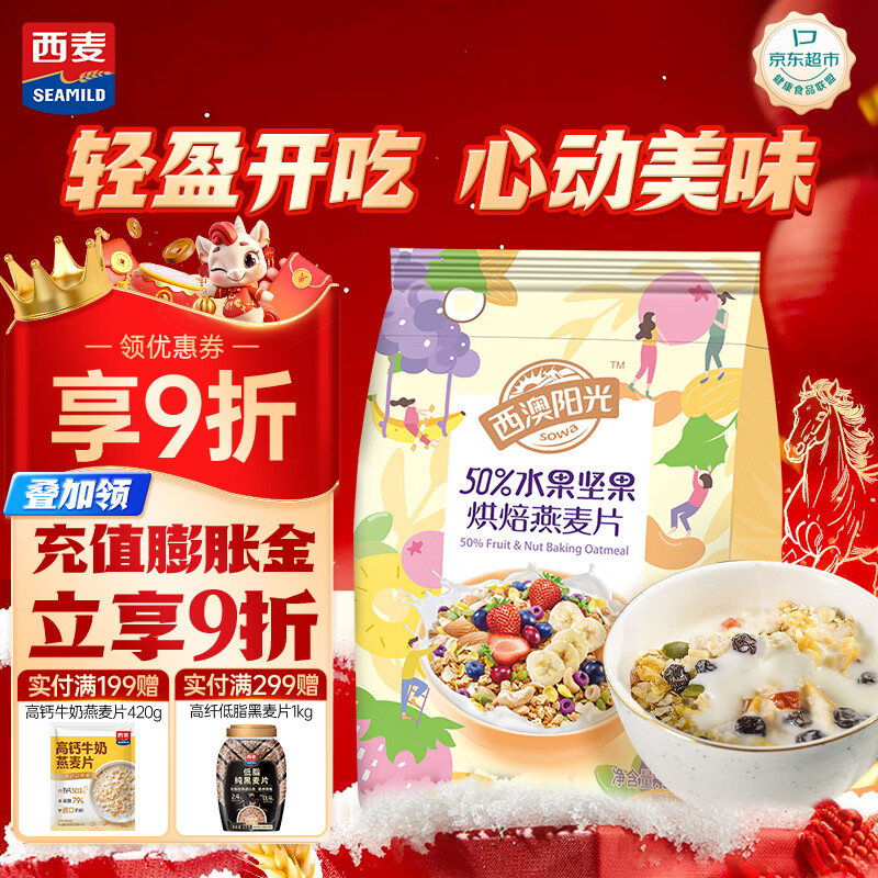 西麦50%水果坚果烘焙燕麦片350g 营养早餐五谷代餐干吃休闲零食