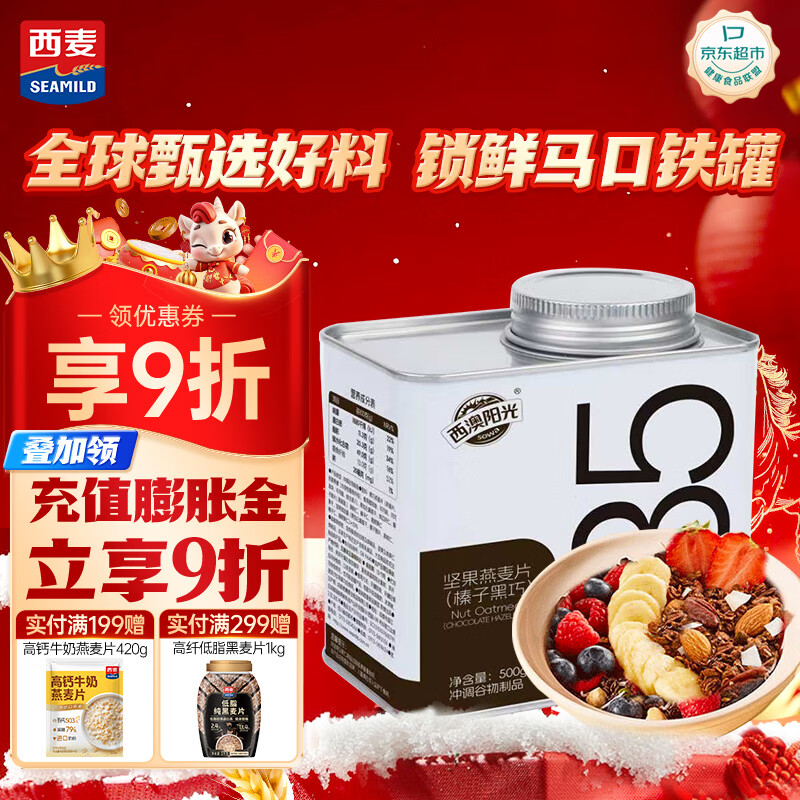 西麦西澳阳光榛子黑巧坚果燕麦片500g酸奶搭档早餐代餐健身高饱腹感