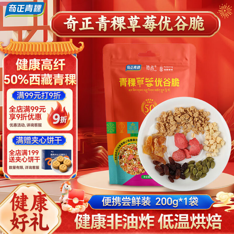 藏晶奇正青稞草莓优谷脆200g西藏特产水果坚果燕麦片即食减脂早餐代餐