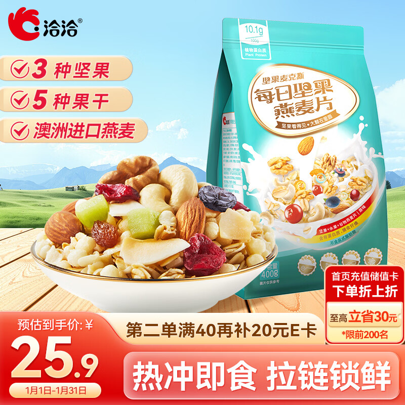 洽洽每日坚果燕麦片麦克斯400g家庭装营养早餐混合果干速食代餐恰恰
