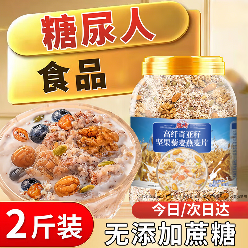 颜茴记糖尿病人食品奇亚籽苦荞坚果燕麦片血无糖精中老年高营养早餐 奇亚籽坚果燕麦片【 2斤装大罐】带碗勺