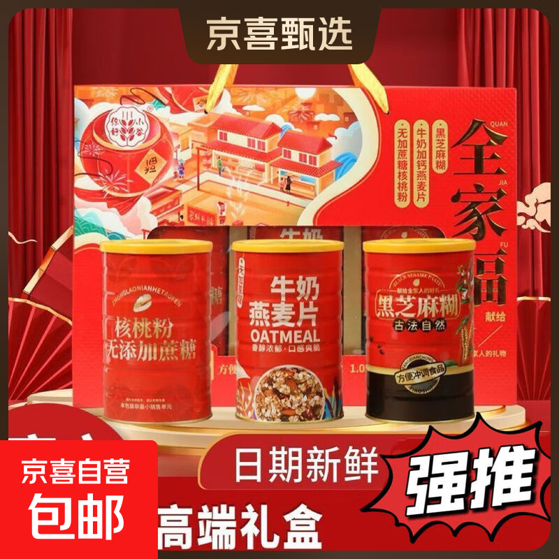 【年货礼盒】早餐麦片黑芝麻糊营养品即食冲饮过年送父母长辈礼物 360g*3罐【坚果燕麦片】 1.08kg【一箱装】