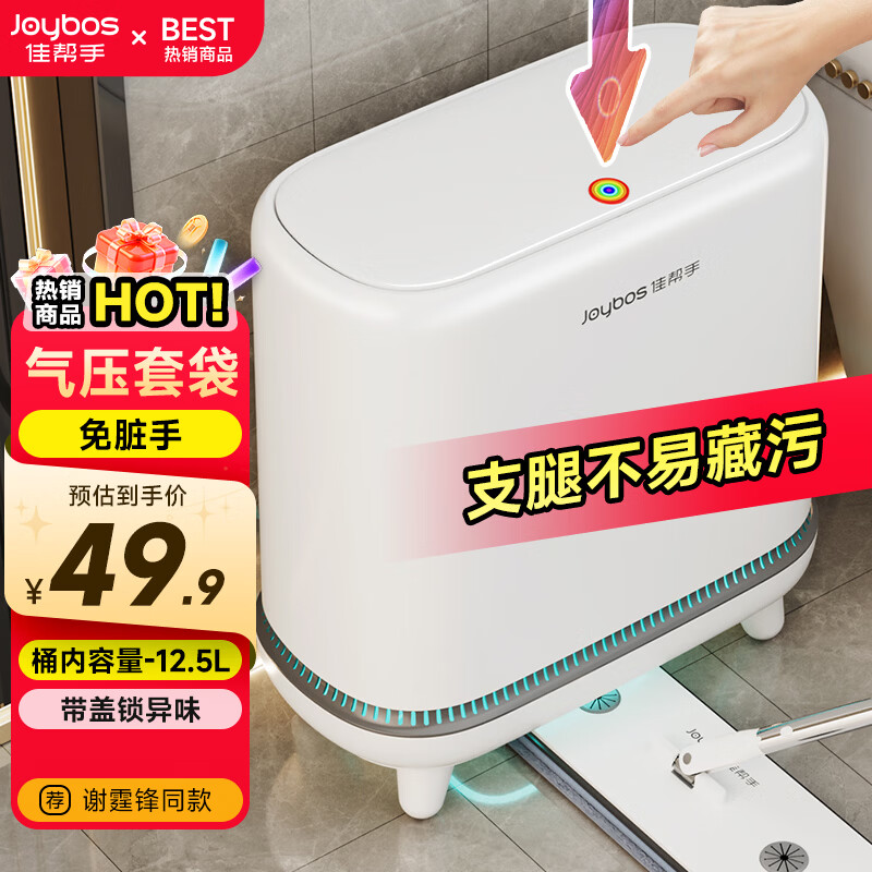 佳帮手垃圾桶12.3L客厅家用网红带盖大号厨房卫生间厕所卧室气压铺袋