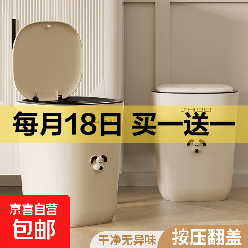 小狗垃圾桶卫生间带盖北欧风大容量按压办公室卧室大号家用纸篓 奶油色小狗【大号】16L弹盖款