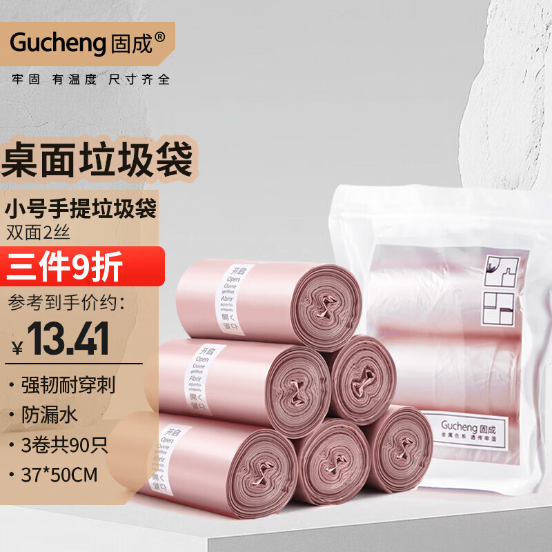 固成平口垃圾袋玫瑰金30*35cm150只单面1丝 桌面小号垃圾袋小垃圾袋
