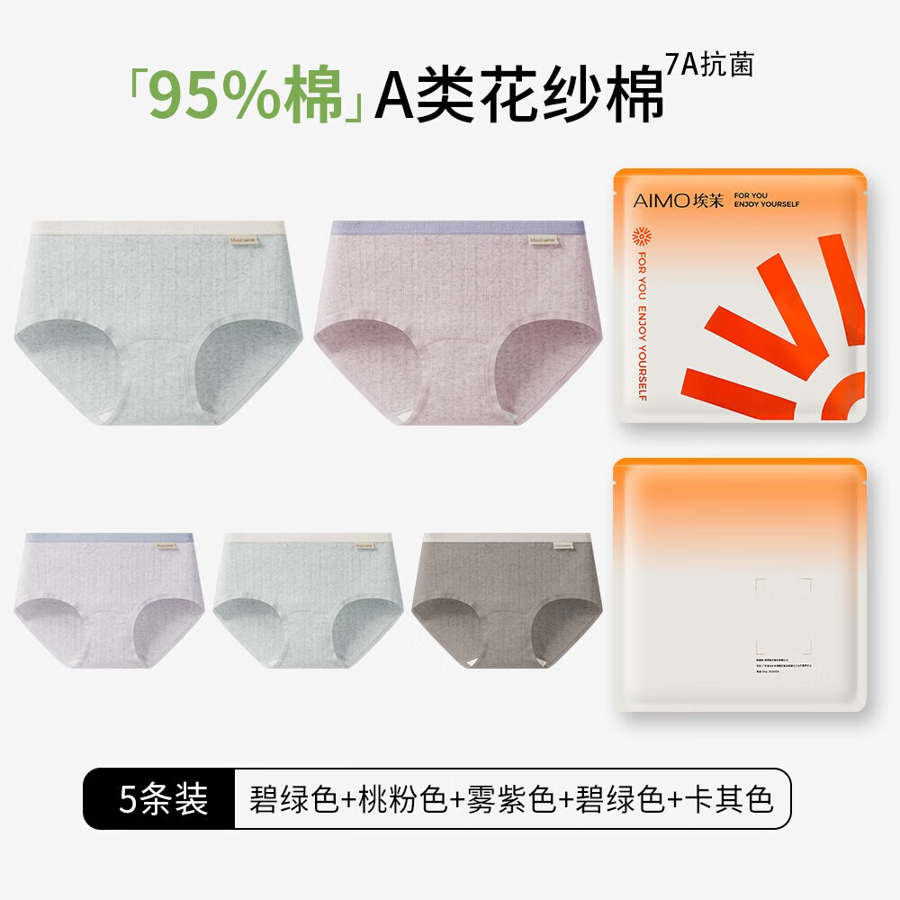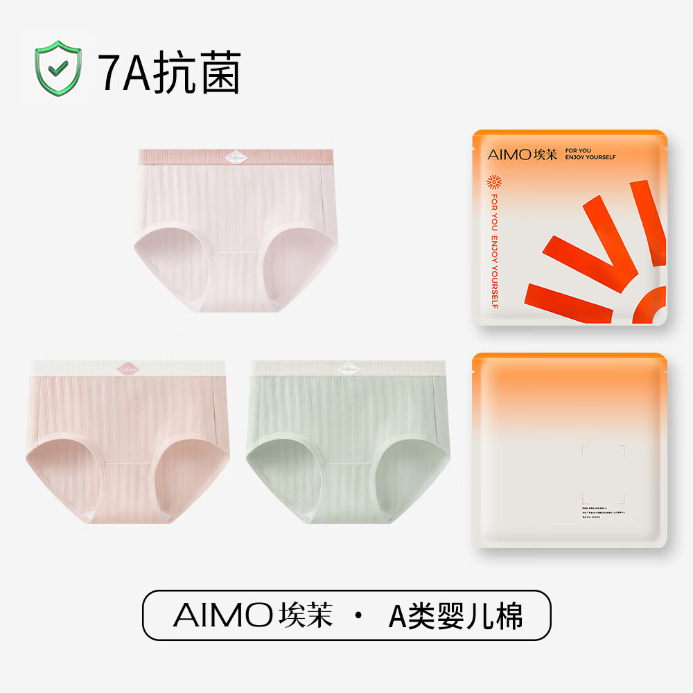 埃茉内裤女生纯棉抗菌全棉裆2025新款a类中腰无痕女士三角短裤头 奶粉+奶油虾+肤绿 3条 M (80-105斤)