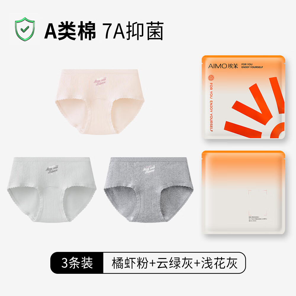 埃茉内裤女生纯棉抗菌全棉裆中腰无痕女士三角裤2025新款小仙女短裤头 橘虾粉+云绿灰+浅花灰 3条 L (110-125斤)