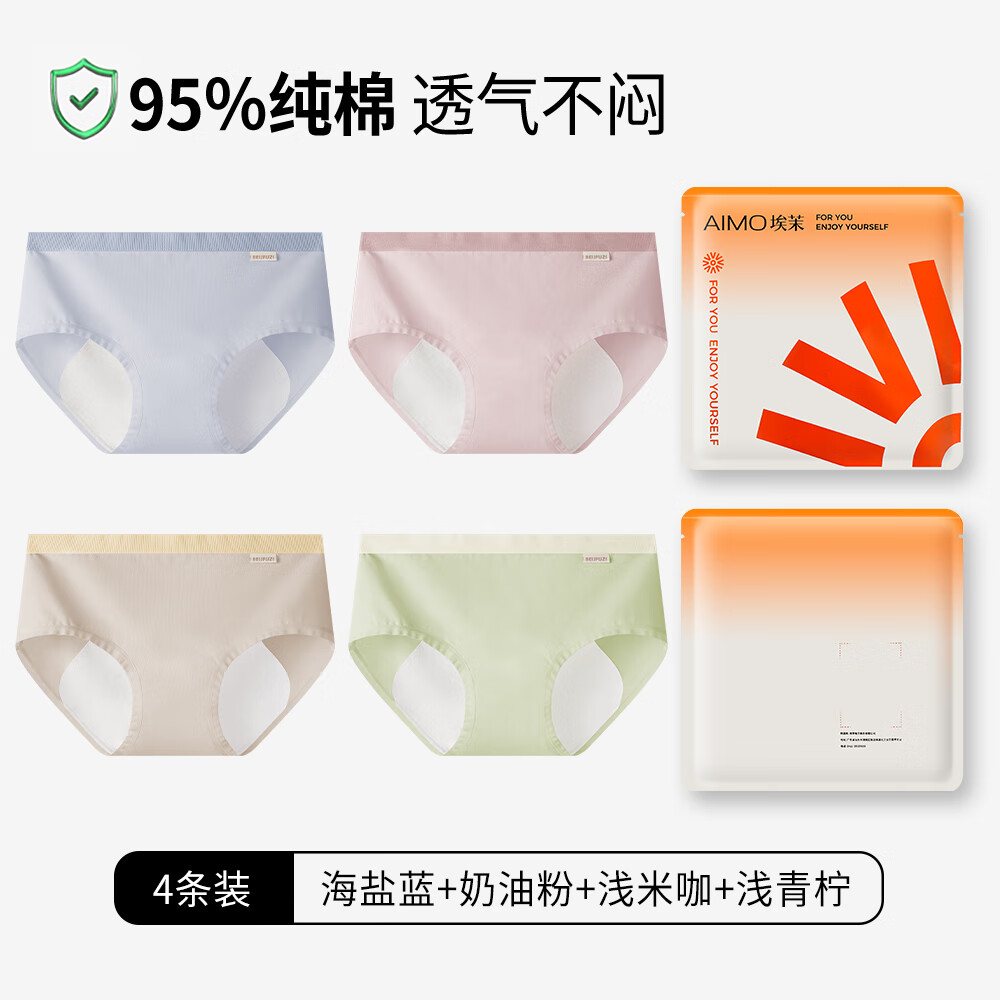 埃茉生理期内裤女士纯棉抗菌裆月经期少女学生透气加宽防漏安全姨妈裤 海盐蓝+奶油粉+浅米咖+浅青柠 4条 L 100-120斤