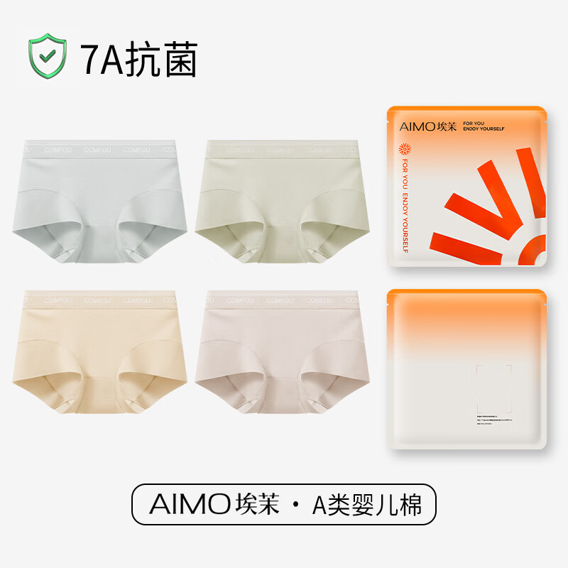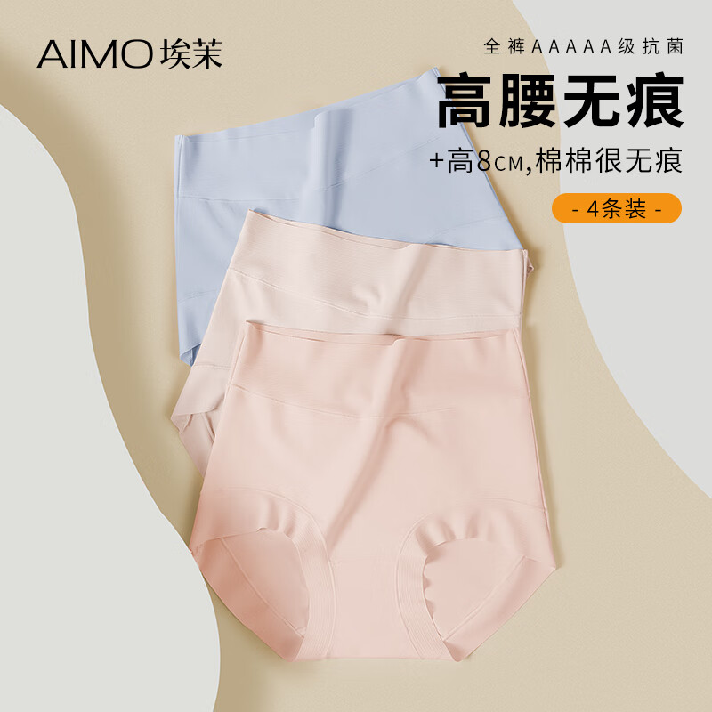 埃茉内裤女生纯棉抗菌全棉裆中高腰无痕女士2025新款a类三角裤头 款式A 云蓝+青玉+杏仁+盈粉 4条 L 105-130斤