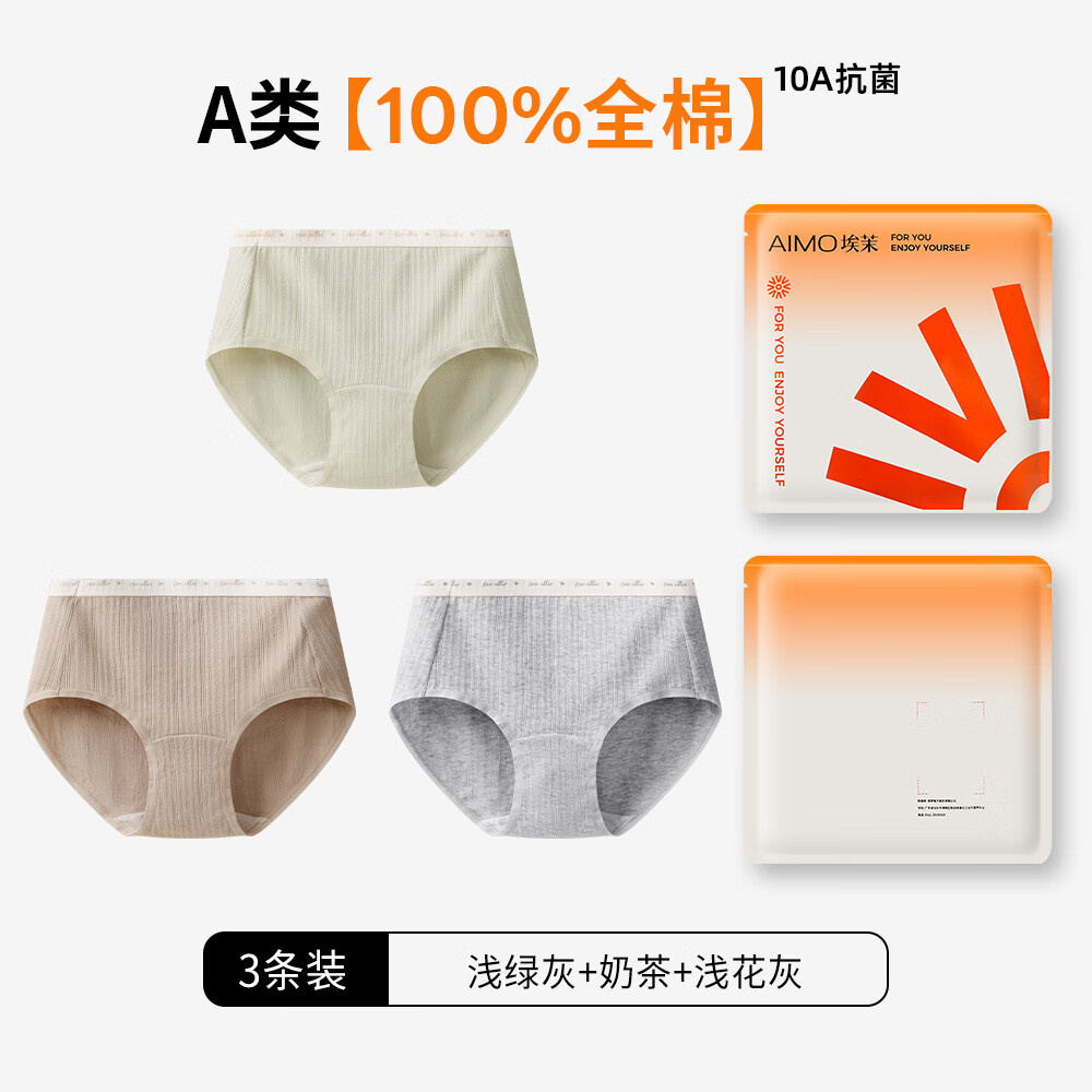 埃茉内裤女士纯棉三角裤2025新款纯棉抗菌a类全棉裆秋冬无痕女生短裤 浅绿灰+奶茶+浅花灰 3条 XL